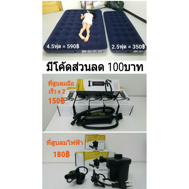- ชื่อสินค้า ที่นอนสูบลม และที่สูบลม