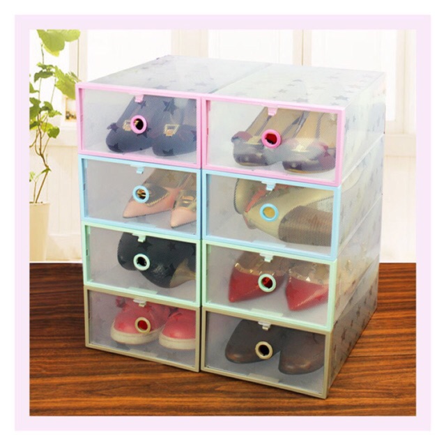 - ราคา พร้อมส่งไซส์ M,L กล่องใส่รองเท้า กล่องรองเท้าฝาหน้า สีพาสเทล (ราคาต่อ 1 กล่อง)